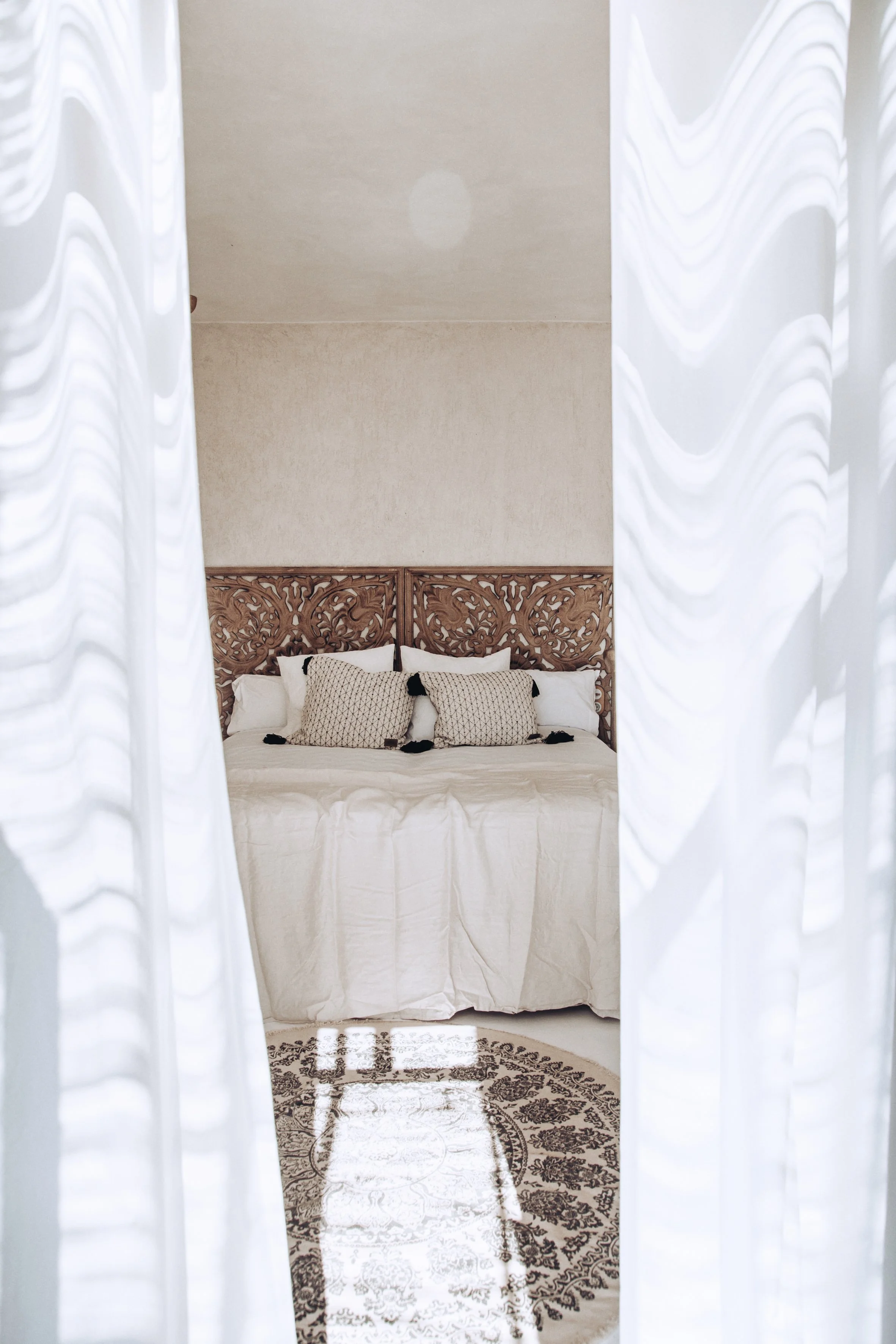 "La Finca" features 7 double bedrooms, each furnished with king-sized box spring beds, handcrafted furniture, and en-suite bathrooms. The bedrooms have an Ibizan and Bohemian style, creating a beautiful space to relax.